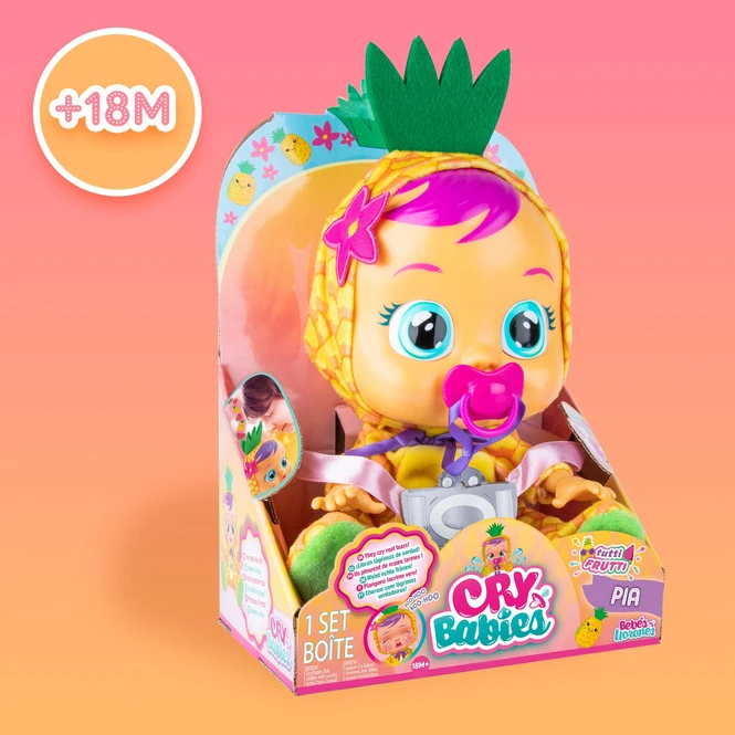 - Lieferumfang: 1 x Cry Babies – Tutti Frutti – Pia mit Schlafanzug und Schnuller
