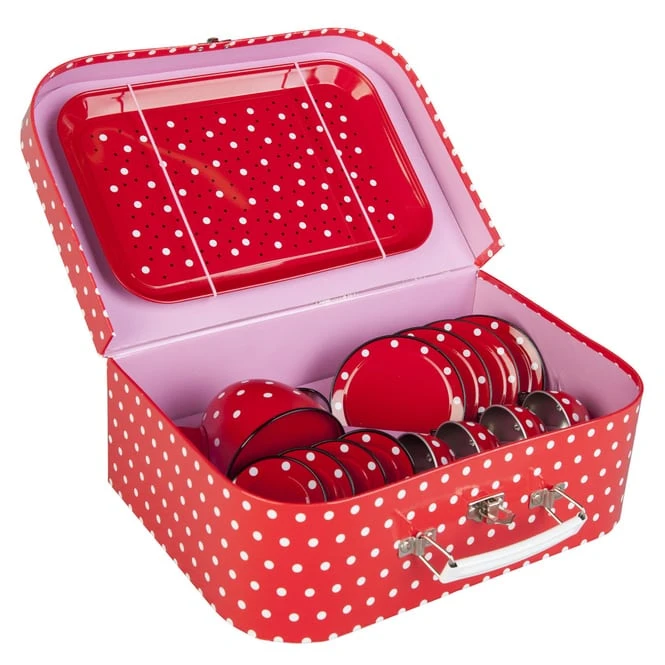 - Kinder Teeservice rot mit weißen Punkten aus stabilem Blech