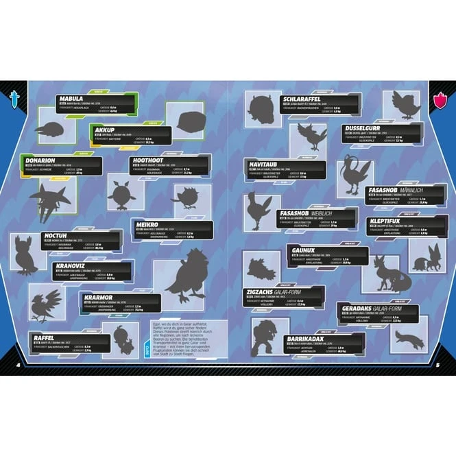 Das offizielle Stickerbuch ist der ultimative Pokémon-Guide durch die Galar-Region! Finde alle wichtigen Infos zu jedem Pokémon: Welche Fähigkeiten hat das Pokémon? Welchem Typ gehört es an? Und wie groß und wie schwer ist es? Finde dann den passenden Sticker zu jedem Pokémon und fülle das Galar-Stickerbuch nach und nach mit Farbe. Auf die Sticker, fertig, los!